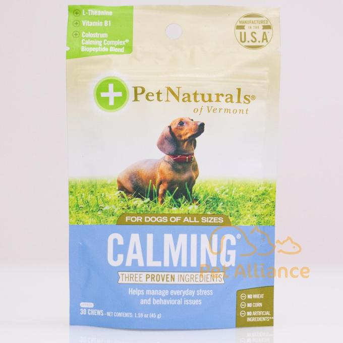 These delish chicken liver-flavored chews feature three effective ingredients including Colostrum Calming Complex and L-theanine to support calm behavior in dogs. 2 soft chews daily. Pet Naturals Calming Chews for Medium and Large Dogs are delicious soft easy-to-administer chews made to meet the specific requirements of medium and large dogs.